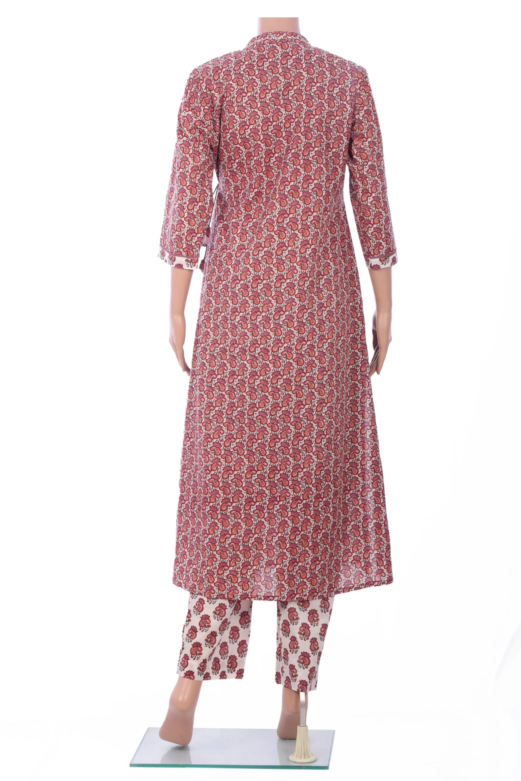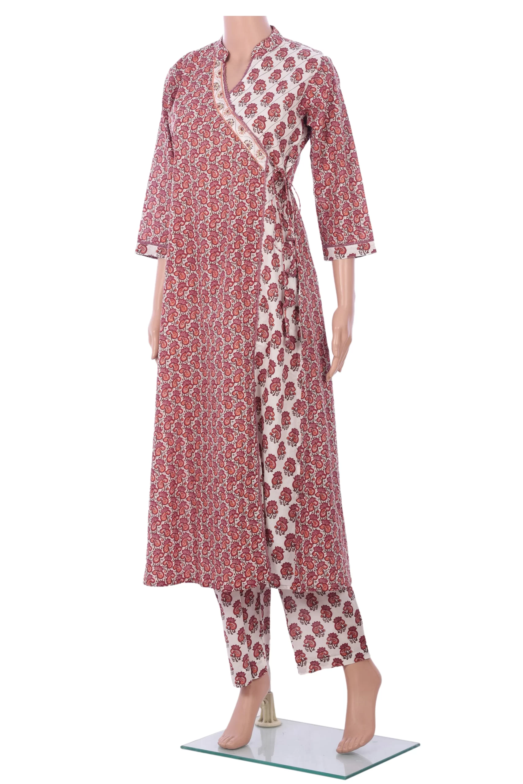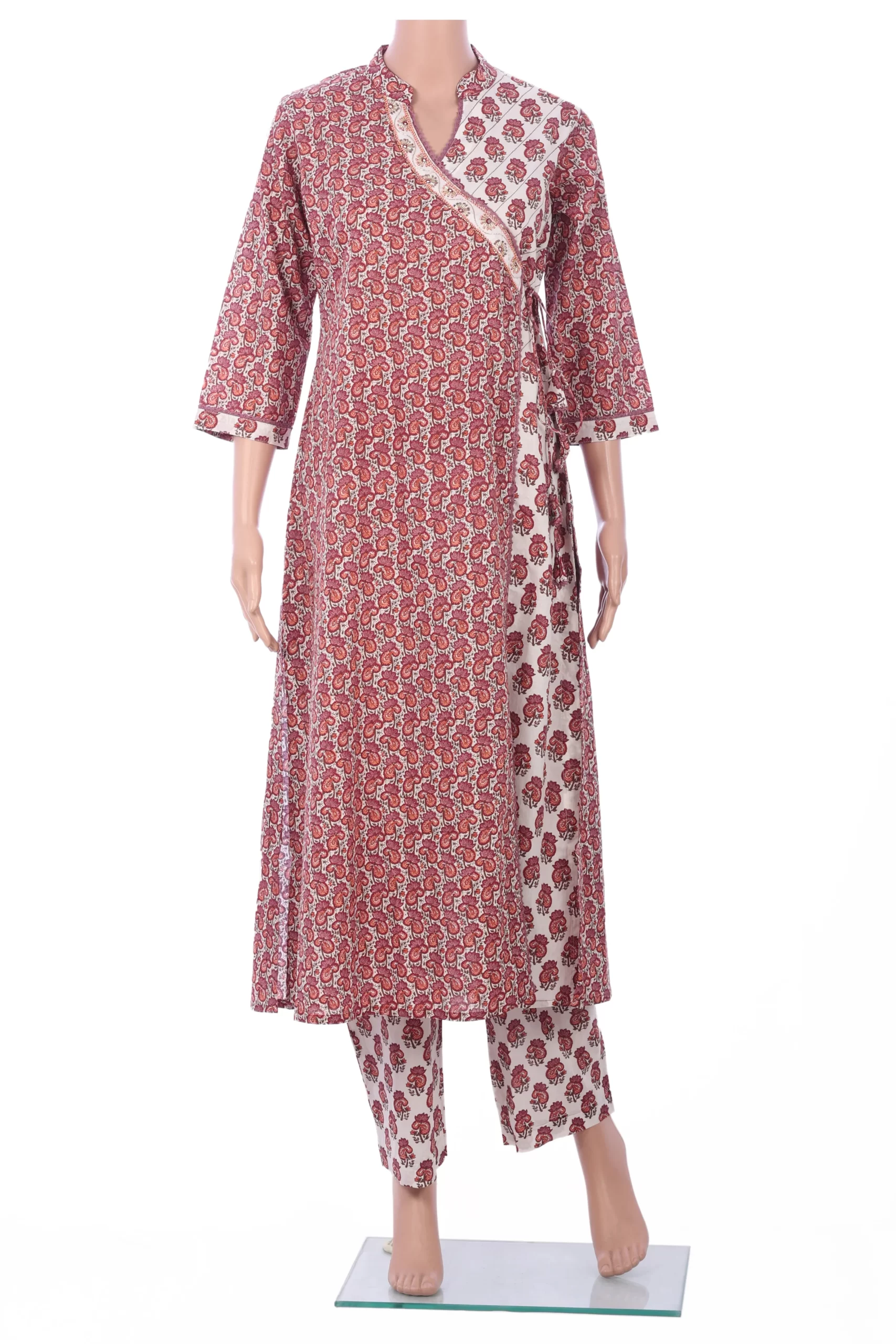 Pure Cotton Angrakha style, V neck, Floral print with hand work with pant.